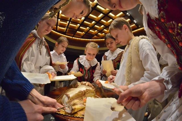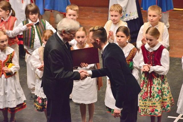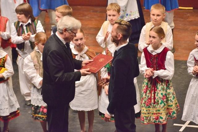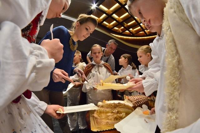 W imieniu Rektora Politechniki Poznańskiej, profesor Jacek Goc podziękował kierującym Zespołem – Magdalenie Howorskiej i Karolowi Rogackiemu – za pracę włożoną w przygotowanie młodych artystów. Oni z kolei, cierpliwie wytrwali podczas części oficjalnej, zerkając jednak z apetytem na czekający tort urodzinowy.