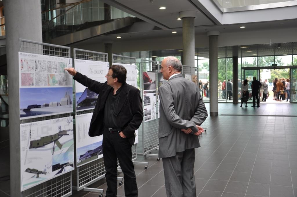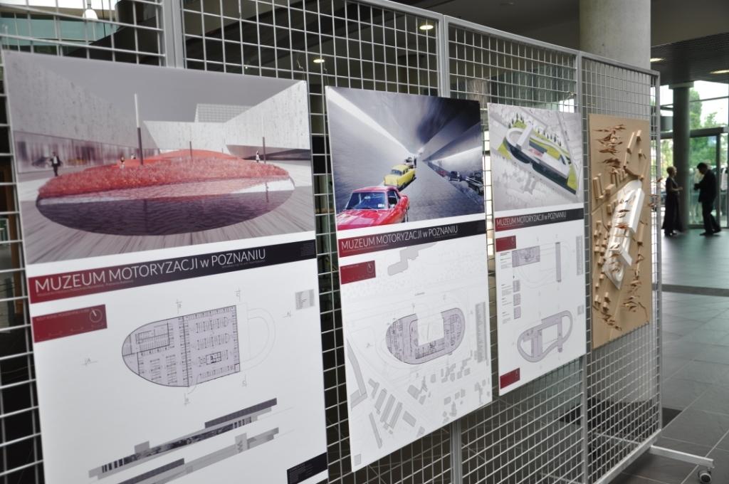 Jego Magnificencja Rektor Politechniki Poznańskiej prof. dr hab. inż. Adam Hamrol wraz z Dziekanem Wydziału Architektury dr. hab. inż. arch. Jerzym Suchankiem, prof. nadzw.; Dziekanem Wydziału Maszyn Roboczych i Transportu dr. hab. inż. Markiem Idziorem, prof. nadzw. oraz Prezesem Automobilklubu Wielkopolski Robertem Werle otworzyli wystawę projektów koncepcyjnych Muzeum Techniki i Motoryzacji dla Miasta Poznania opracowanych na Wydziale Architektury Politechniki Poznańskiej.