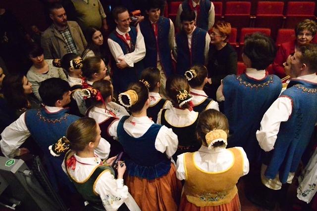 W imieniu Rektora Politechniki Poznańskiej, profesor Jacek Goc podziękował kierującym Zespołem – Magdalenie Howorskiej i Karolowi Rogackiemu – za pracę włożoną w przygotowanie młodych artystów. Oni z kolei, cierpliwie wytrwali podczas części oficjalnej, zerkając jednak z apetytem na czekający tort urodzinowy.