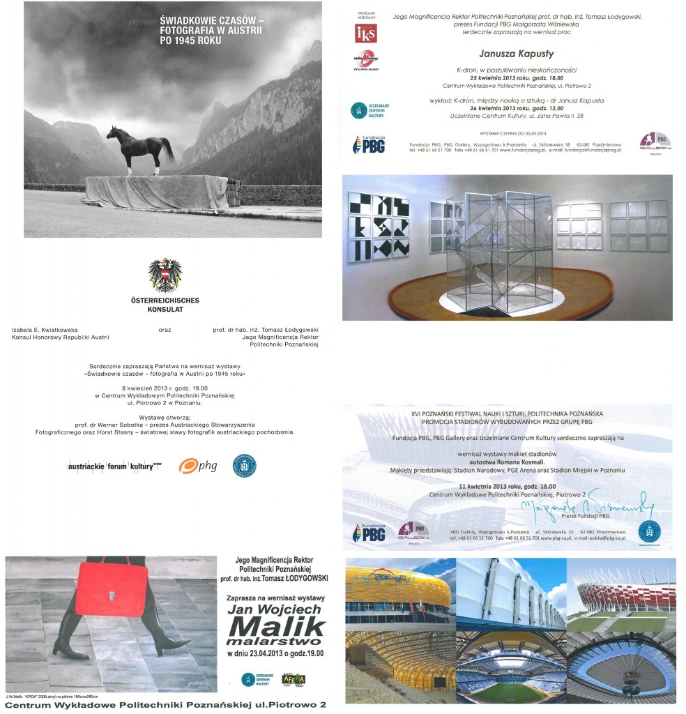 Data dodania 20.05.2013 Udostępnij: Wystawy 2013, organizowane przez Uczelniane Centrum Kultury Politechniki Poznańskiej Mamy przyjemność przedstawić uaktualniony wykaz wystaw, odbywających się w murach Politechniki Poznańskiej, w pierwszej połowie 2013 roku. Język PL