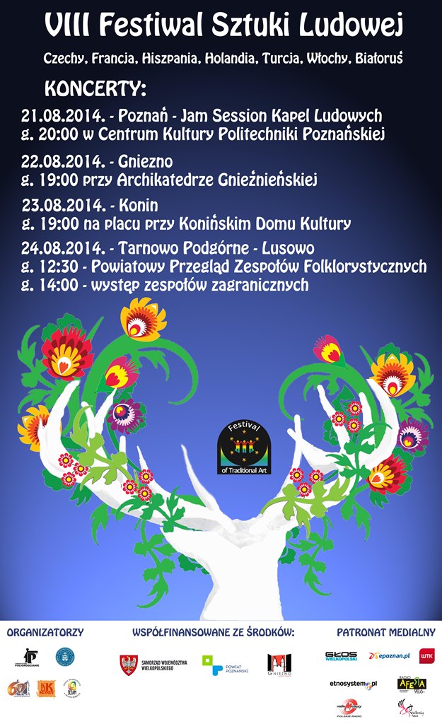 Między 21 a 24 sierpnia br. odbędzie się VIII Festiwal Sztuki Ludowej. W tegorocznej edycji udział wezmą zespoły z Białorusi, Czech, Francji, Hiszpanii, Holandii, Turcji i Włoch oraz Zespół Tańca Ludowego Politechniki Poznańskiej „Poligrodzianie” i Zespół Pieśni i Tańca „Konin”.